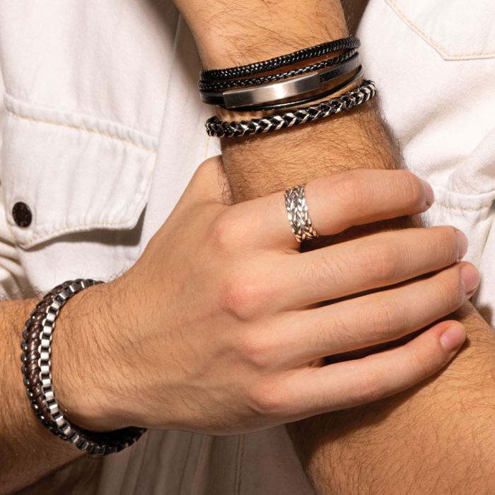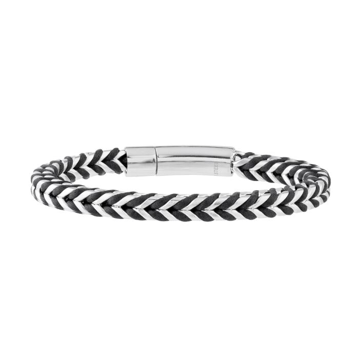 Steel and leather bracelet
